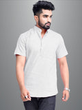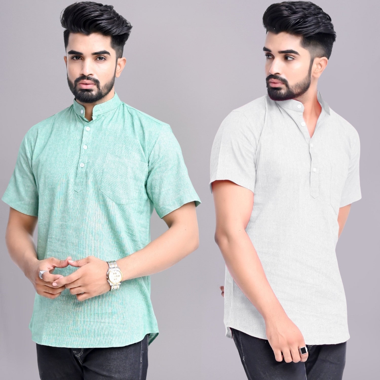 Pack of 2 Mens Solid Green And Melange Grey Khadi Cotton Short Kurta Combo