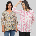 Discover the ideal combination of style and comfort with our Womens Regular Fit Short Kurti/Tops Combo. Embrace the essence of fashion with appealing floral, tribal, vector, and zigzag prints that bring a splash of excitement to your outfit. These tops are made of quality cotton and are breathable and cosy all day. The round neck with a V-cut enhances your neckline, giving you a sleek and modern look. Elevate your fashion quotient easy with these adaptable short kurti tops that move from casual outings to semi formal occasions. Shop now to update your look with the latest fashion trends for women!
