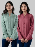 Pack Of 2 Green And Peach Solid Viscose Shirts Combo