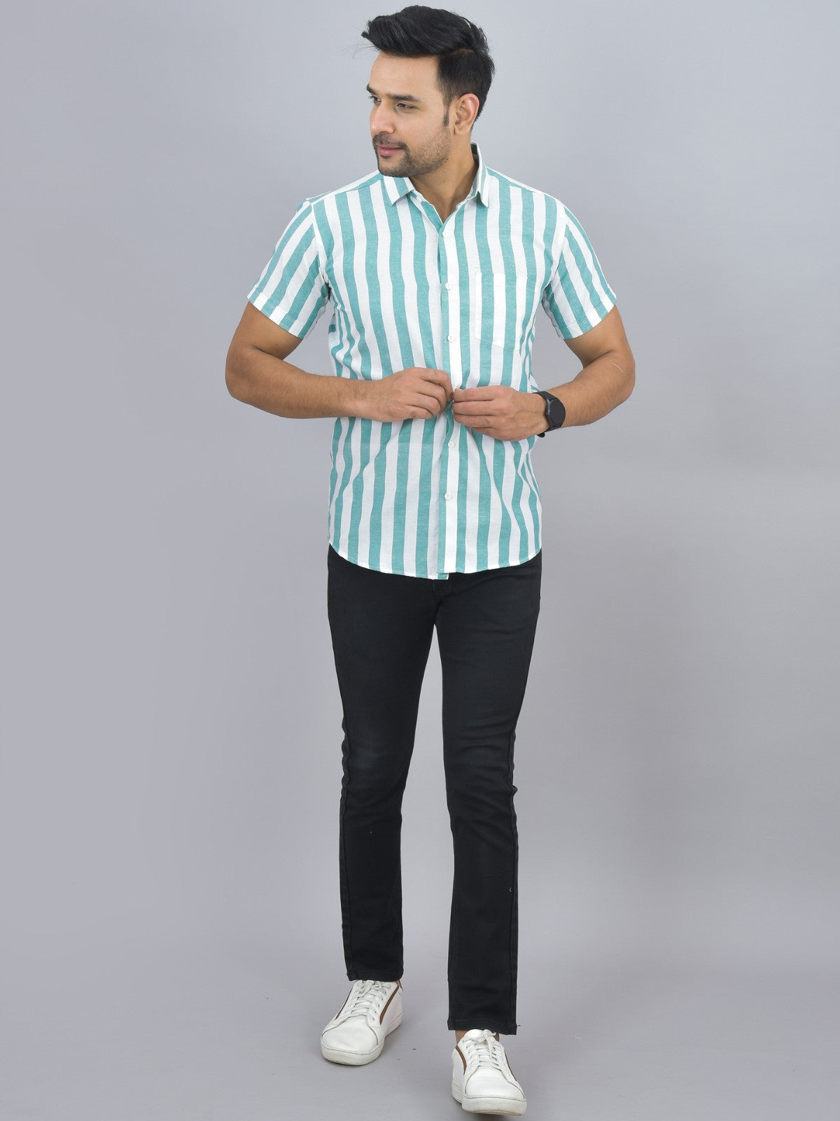 Pack Of 2 Quaclo Couple Green Striped Cotton Shirts