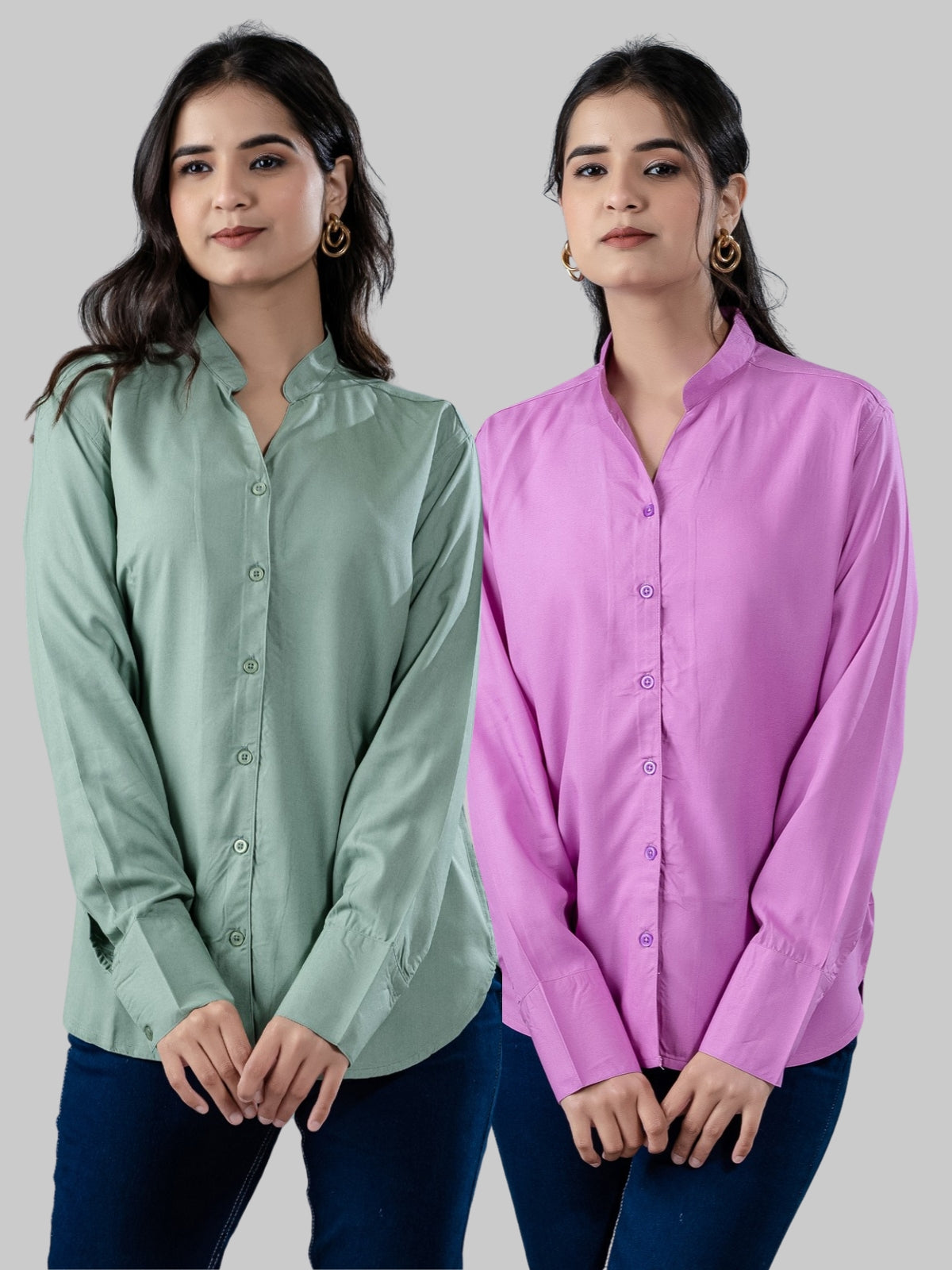 Pack Of 2 Green And Purple Solid Viscose Shirts Combo