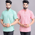 Pack of 2 Mens Solid Green And Red Khadi Cotton Short Kurta Combo