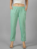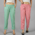 Pack Of 2 Womens Green and Red Fully Elastic Cotton Trousers