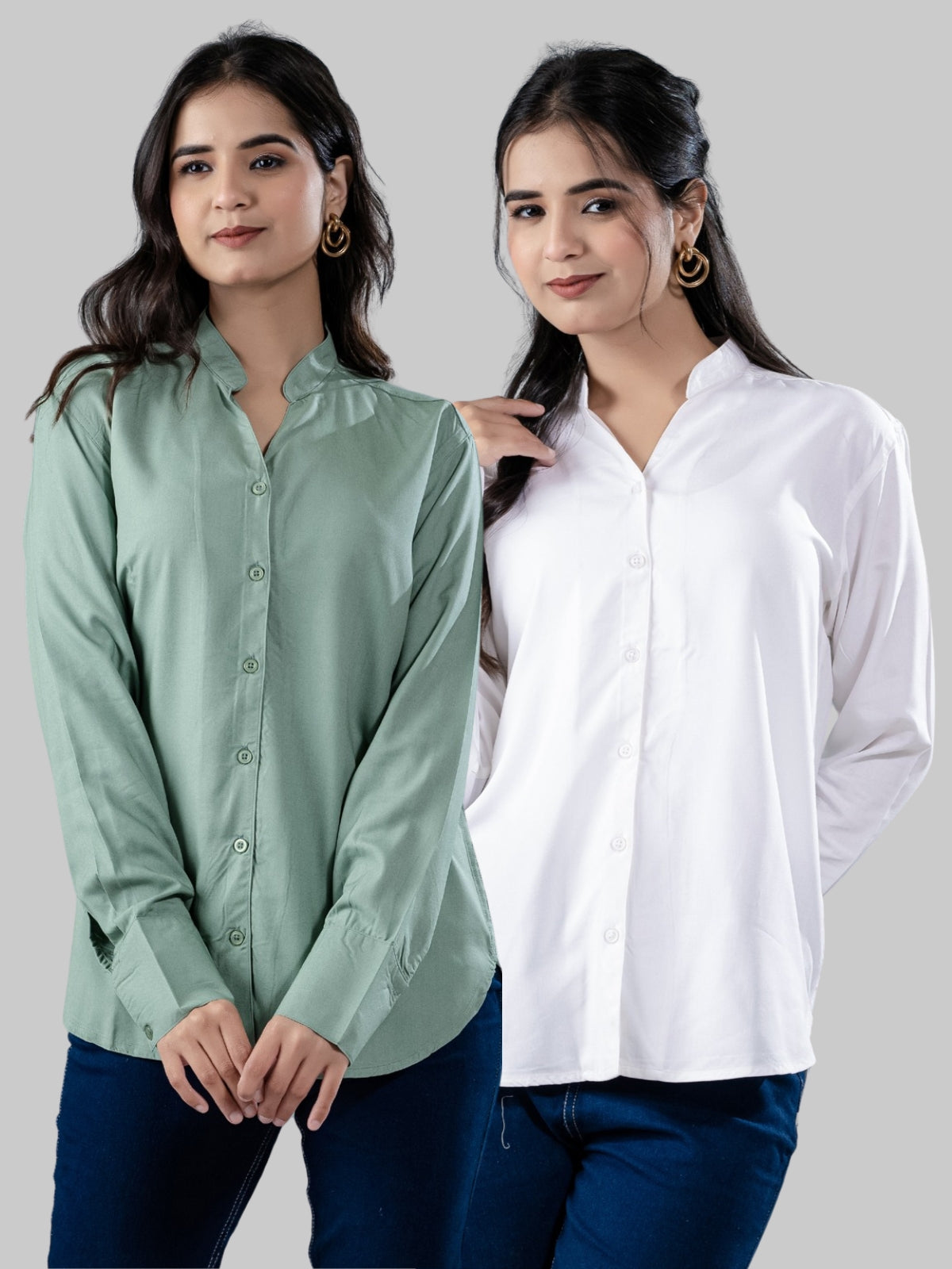 Pack Of 2 Green And White Solid Viscose Shirts Combo