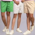 Pack Of 3 Mens Green, White And Yellow Cotton Shorts Combo