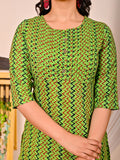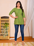 Womens Green Zig-Zag Printed Short Kurti/Top