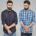 Pack Of 2 Mens Grey And Ice Blue Check Cotton Short Kurta Combo