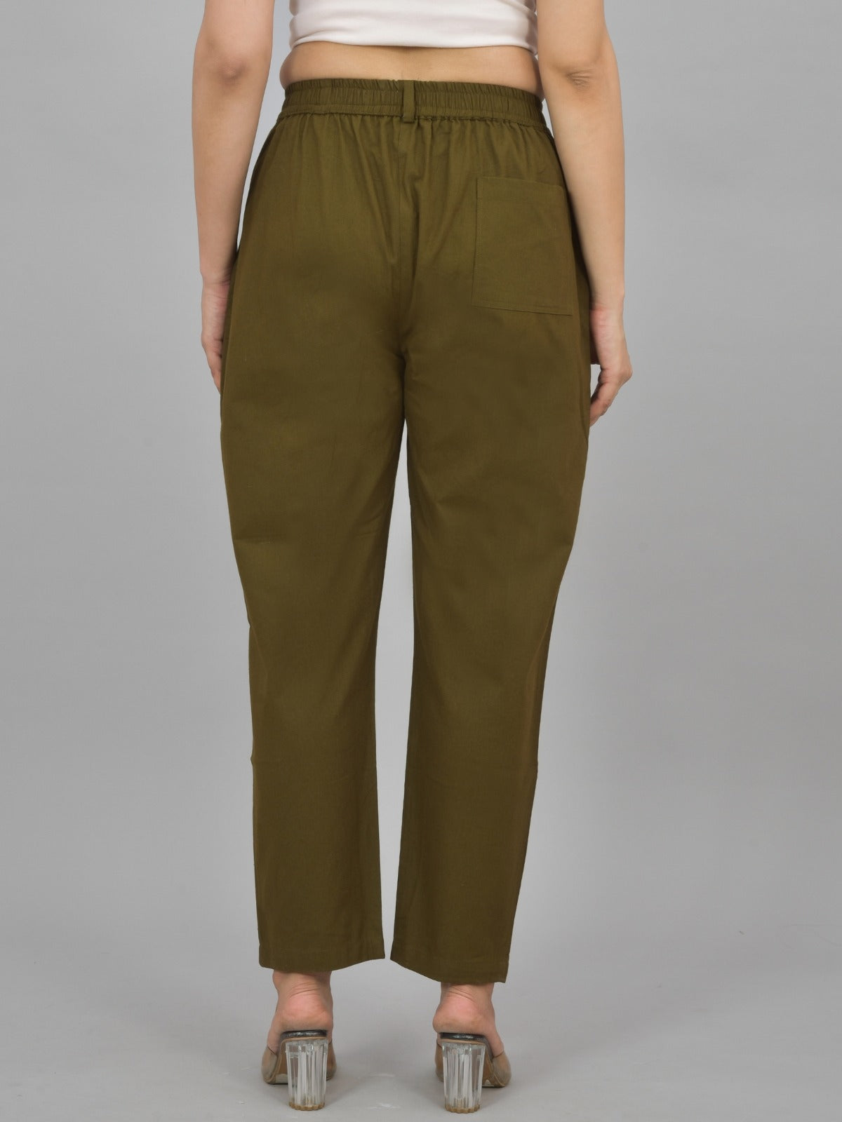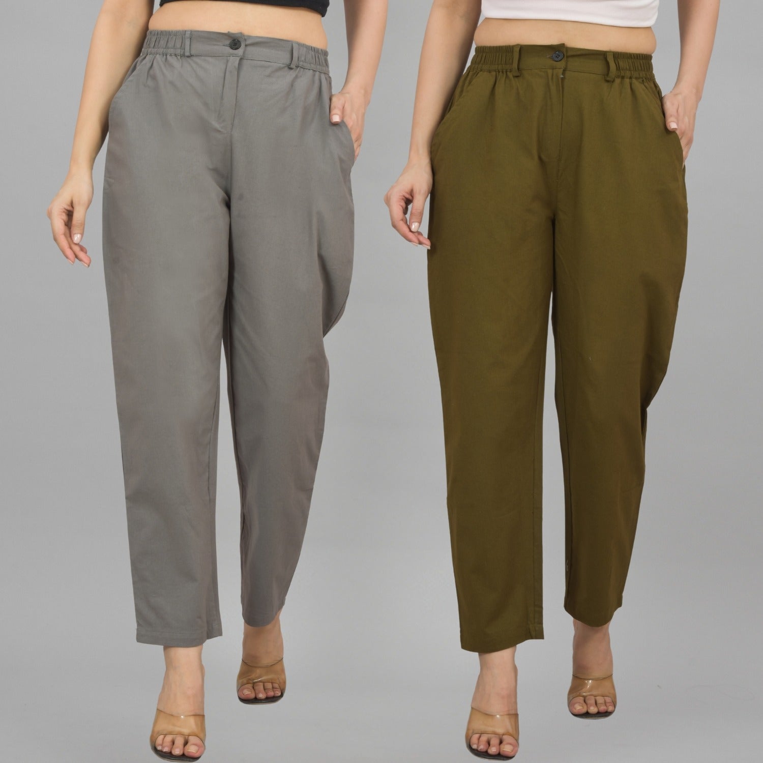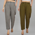 Combo Pack Of 2 Grey And Mehendi Green Womens Cotton Formal Pants