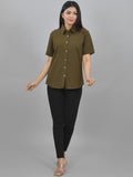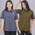 Pack Of 2 Womens Solid Grey And Mehendi Half Sleeve Cotton Shirts Combo
