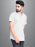 Pack of 2 Mens Solid Grey And Melange Grey Khadi Cotton Short Kurta Combo