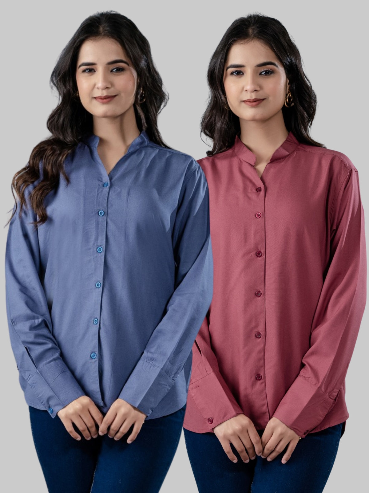 Are you looking for a stylish yet comfy women's shirts? These solid viscose rayon shirts are perfect for any event! The hip-length cut, V-shaped Mandarin collar neck, and full sleeves of these shirts give them a chic and modern look. All-day comfort and breathability are provided by the soft viscose fabric, and a snug and well-fitting fit is ensured by the button closure. These versatile pieces are ideal for casual outings, office wear, and evening events. They look great with jeans, skirts, or pants. These sophisticated and timeless shirts will add flair to your ensemble and are available in a range of colors. Invest in a chic and comfortable fashion update now. Perfect in all seasons!