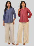 Solid Grey And Peach V Neck Viscose Pleated Tops Combo