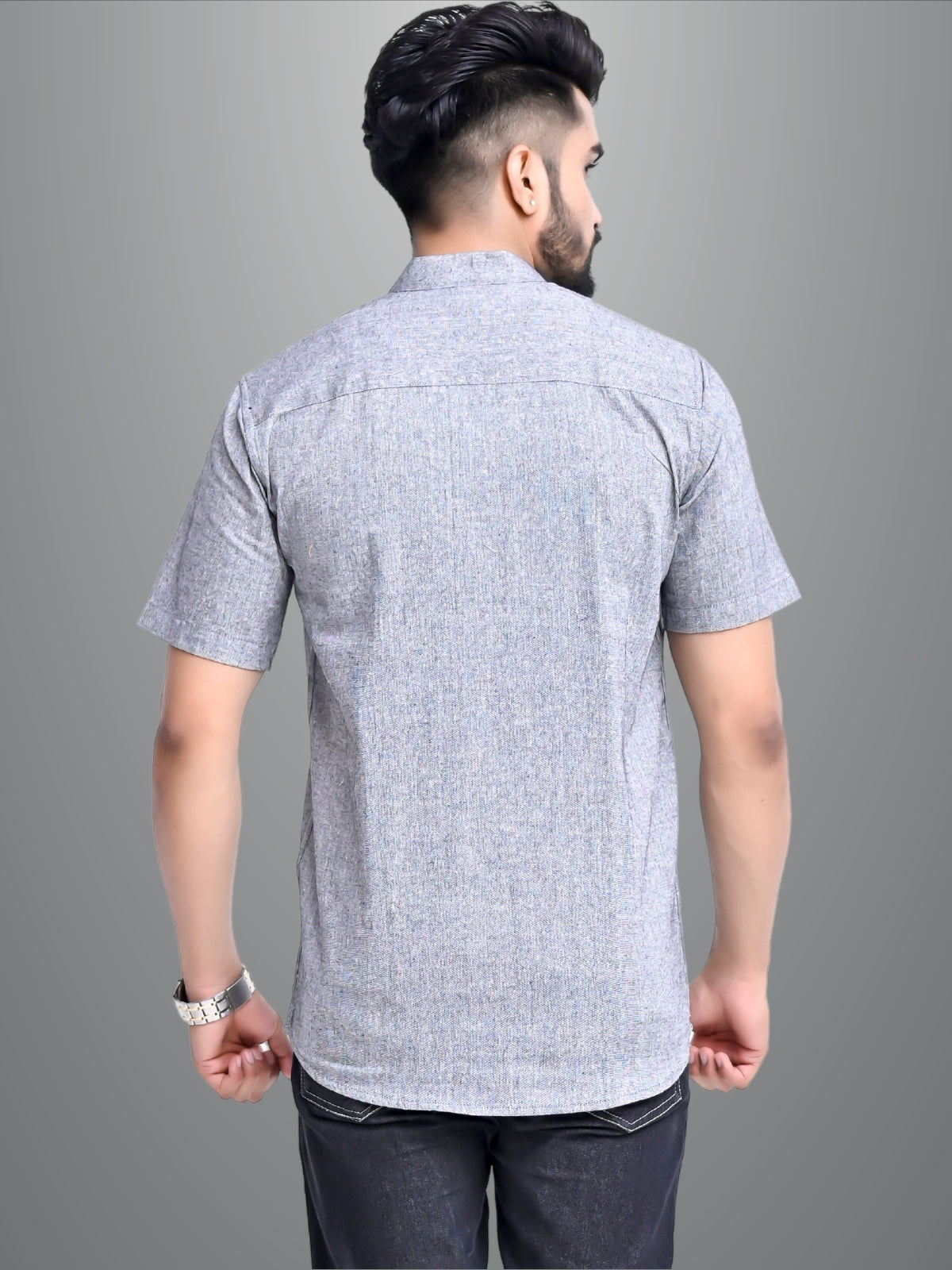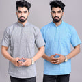 Pack of 2 Mens Solid Grey And Sky Blue Khadi Cotton Short Kurta Combo