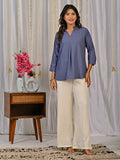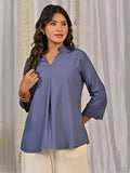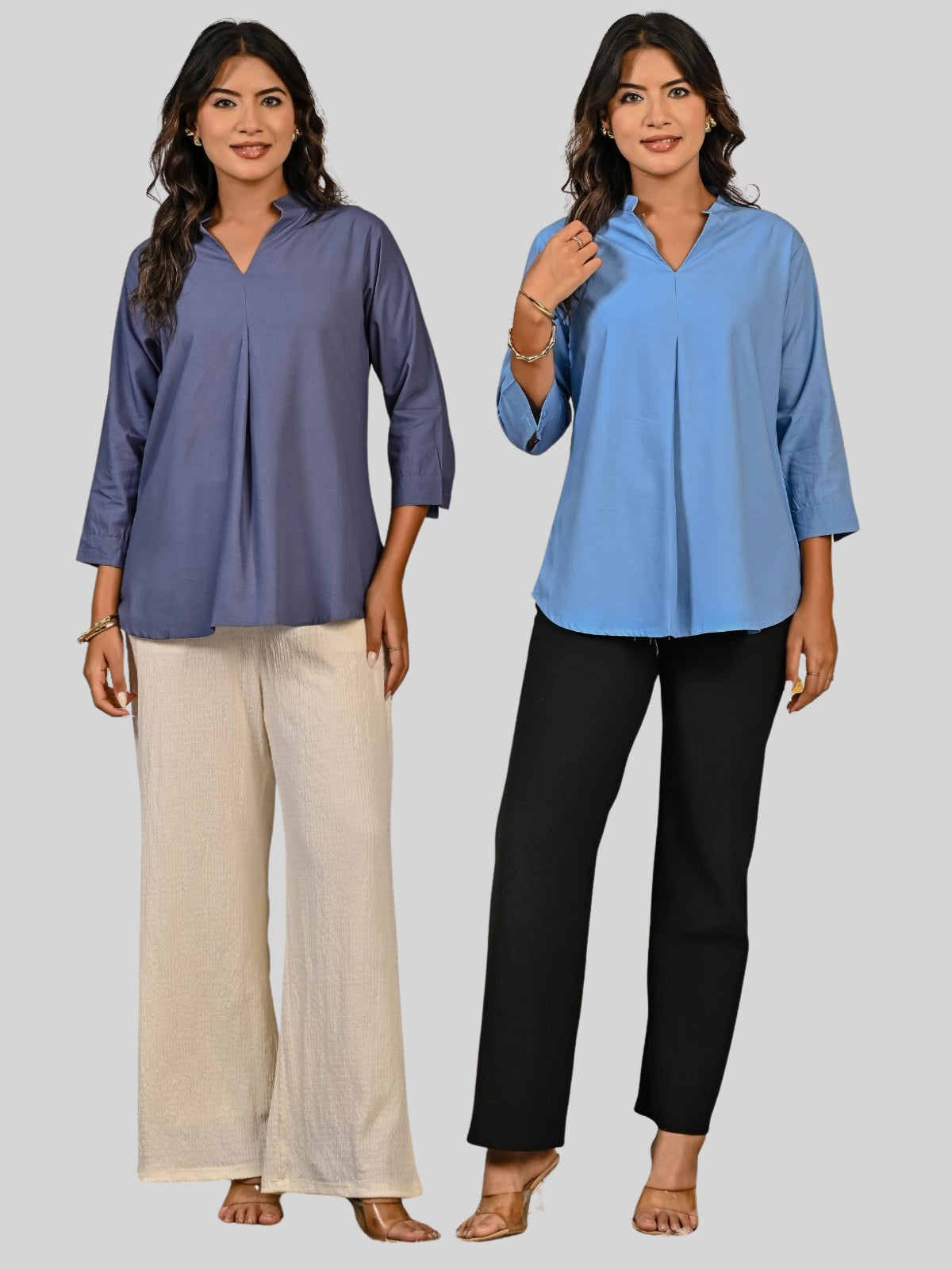 Solid Grey And Sky Blue V Neck Viscose Pleated Tops Combo