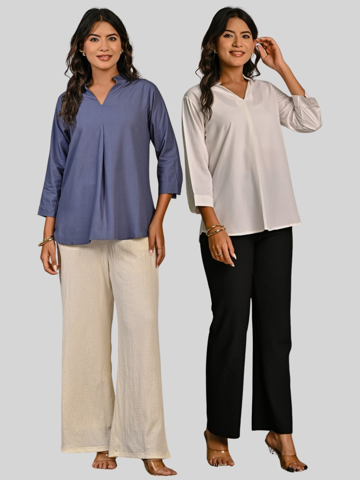 Discover our Solid Viscose V-Neck Collar Pleated Tops for Women, designed to blend comfort with timeless style. Crafted from premium viscose fabric, these chic tops features a flattering V-neck with a mandarin collar, elegant pleated detailing, and versatile 3/4th sleeves for a modern touch. Available in sizes S to 2XL and a wide range of 10 vibrant colors, they ensure the perfect fit for every woman. Ideal for both casual outings and office wear, these stylish tops can be effortlessly paired with jeans, trousers, or skirts for a polished look. Soft, breathable, and easy to style, it’s a wardrobe.