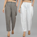 Combo Pack Of 2 Grey And White Womens Cotton Formal Pants