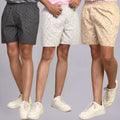 Discover Pack of 3 Mens Cotton Shorts Combo, the ultimate level of comfort and style. These shorts are made from finest cotton and provide unmatched softness and breathability, making them perfect for all-day wear. You may easily show your individual style thanks to the variety of eye-catching prints available. Buy This Pack of 3 Mens Cotton Shorts Combo And Upgrade your bottoms game right away.