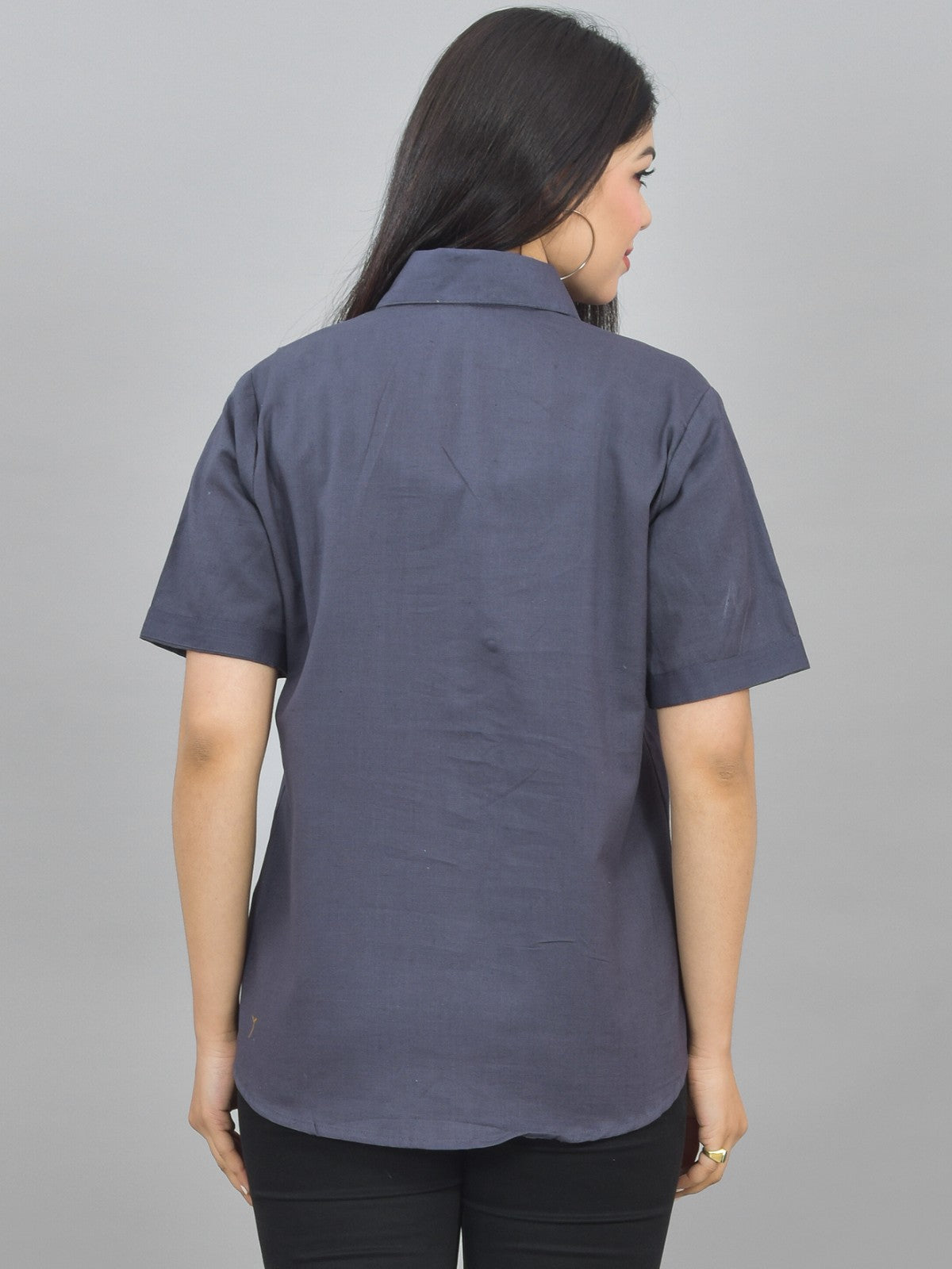 Pack Of 2 Womens Solid Grey And Wine Half Sleeve Cotton Shirts Combo