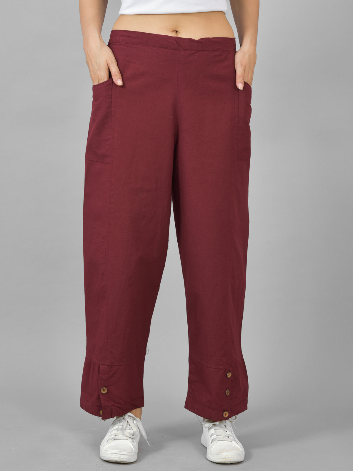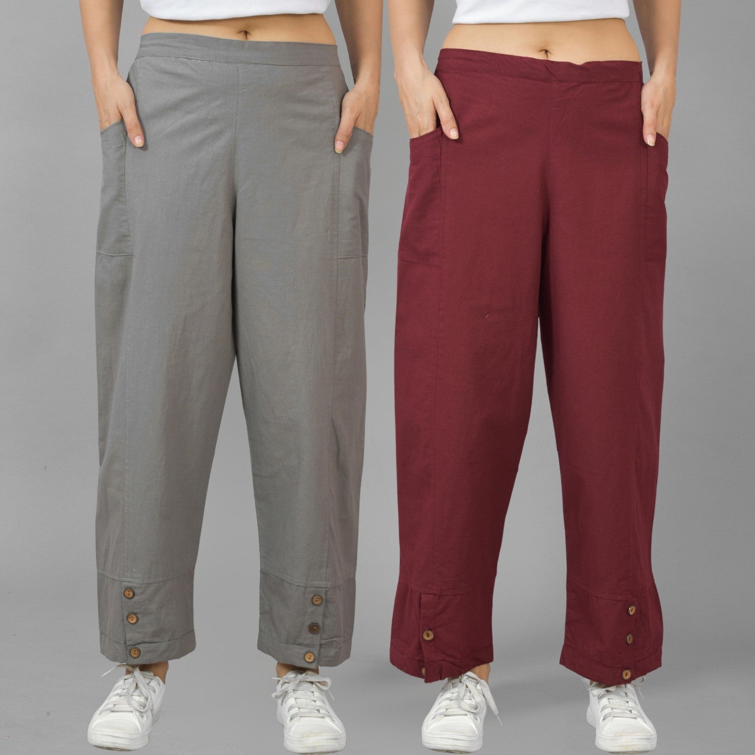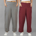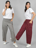 Combo Pack Of Womens Grey And Wine Side Pocket Straight Cargo Pants