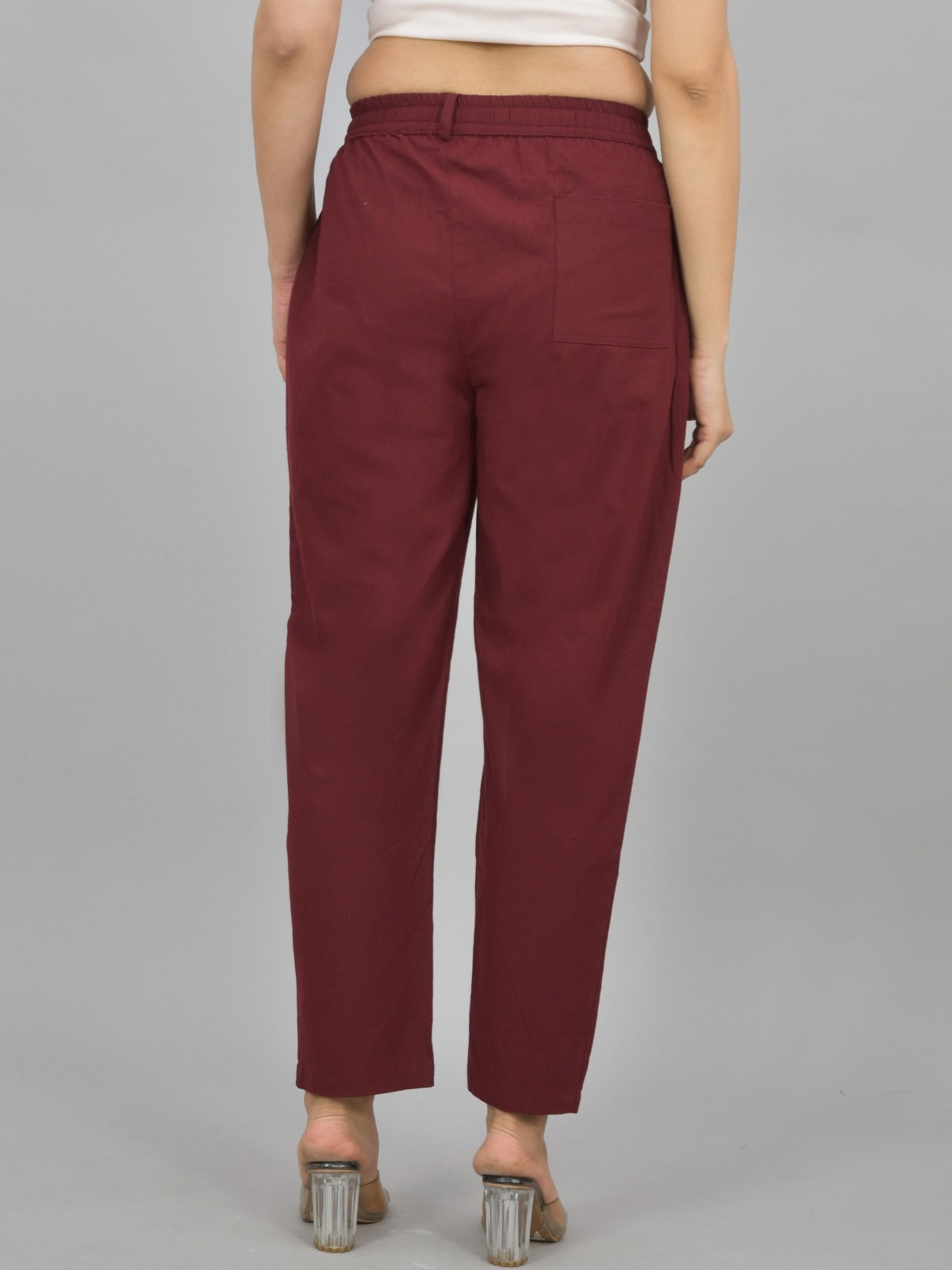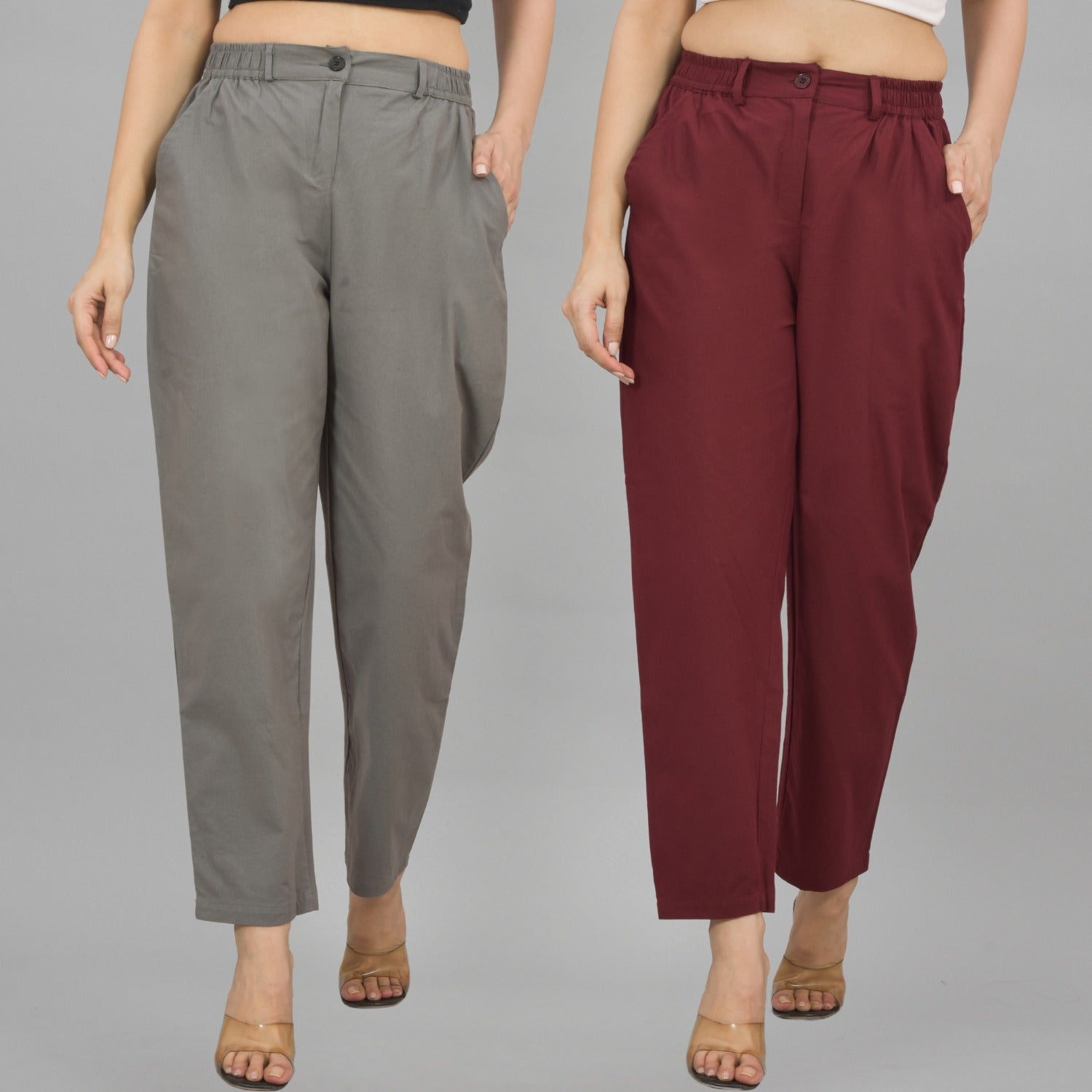 Combo Pack Of 2 Grey And Wine Womens Cotton Formal Pants