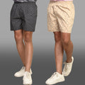 Pack Of 2 Grey And Yellow Mens Printed Shorts Combo