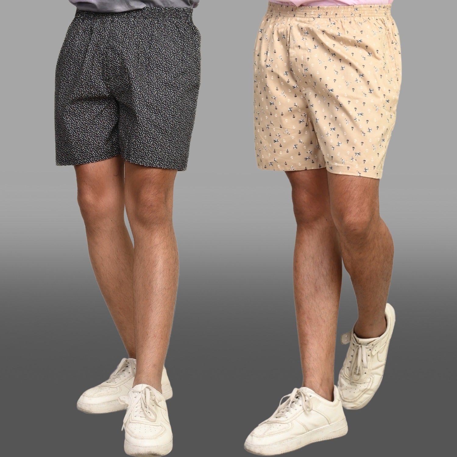 Discover Pack of 2 Quaclo Printed Mens Cotton Boxers Combo, the ultimate level of comfort and style. These boxers are made from finest cotton and provide unmatched softness and breathability, making them perfect for all-day wear. You may easily show your individual style thanks to the variety of eye-catching prints available. Buy This Pack of 2 Quaclo Printed Mens Cotton Boxers Combo And Upgrade your bottoms game right away.