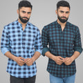 Pack Of 2 Mens Ice Blue And Ocian Blue Check Cotton Short Kurta Combo