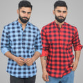 Pack Of 2 Mens Ice Blue And Red Check Cotton Short Kurta Combo
