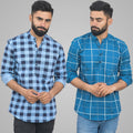 Pack Of 2 Mens Ice Blue And Teal Blue Wide Check Cotton Short Kurta Combo