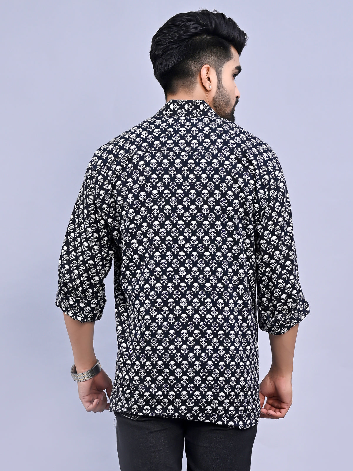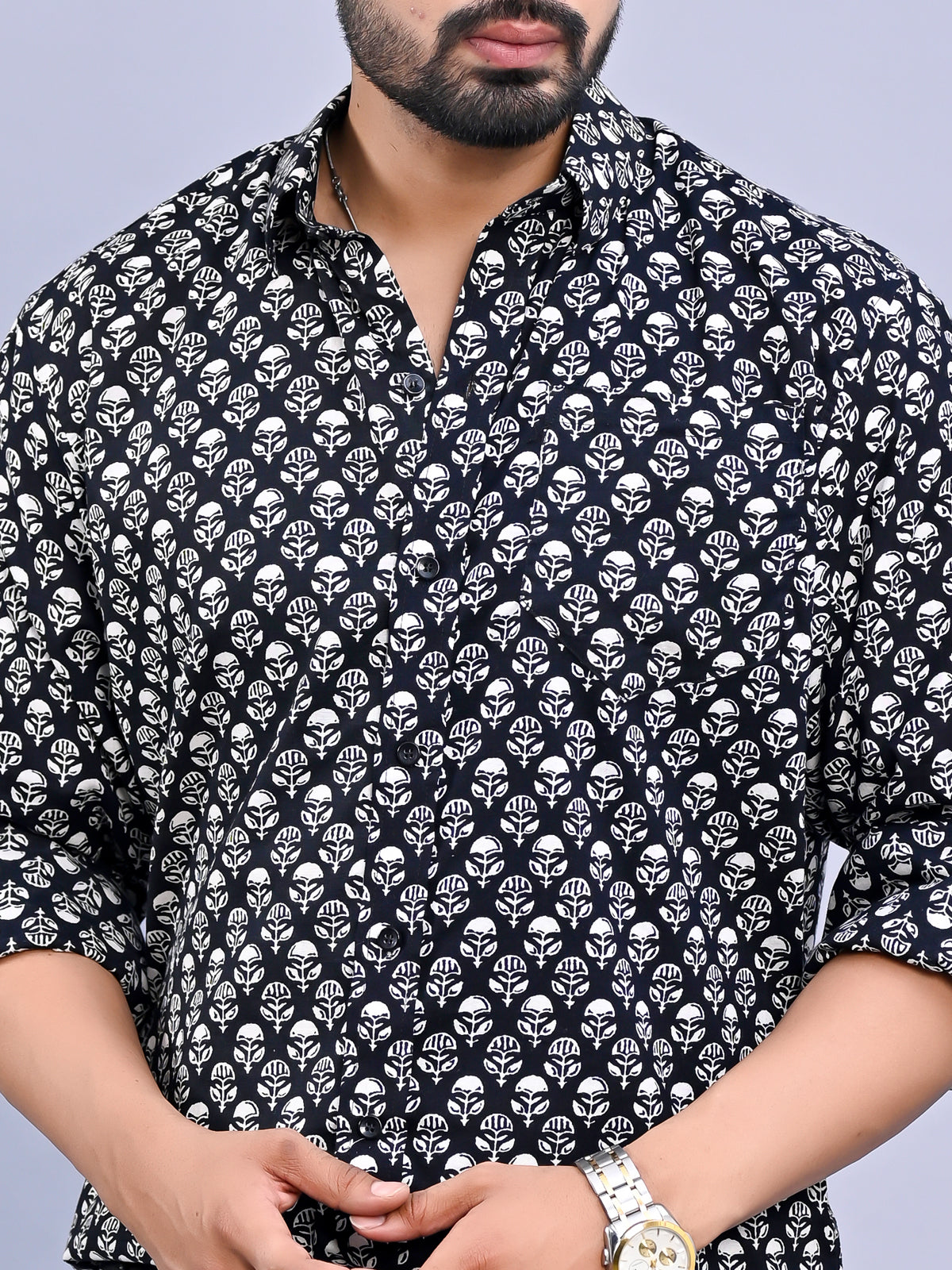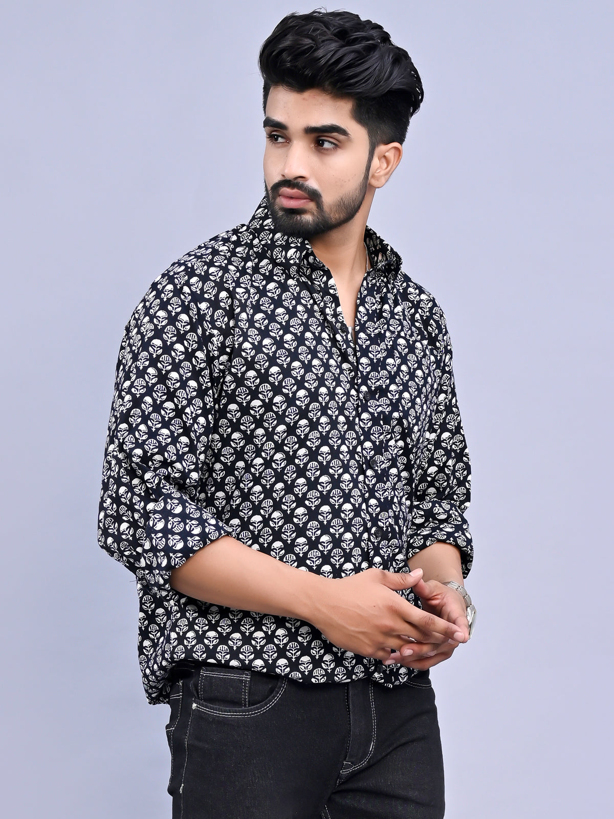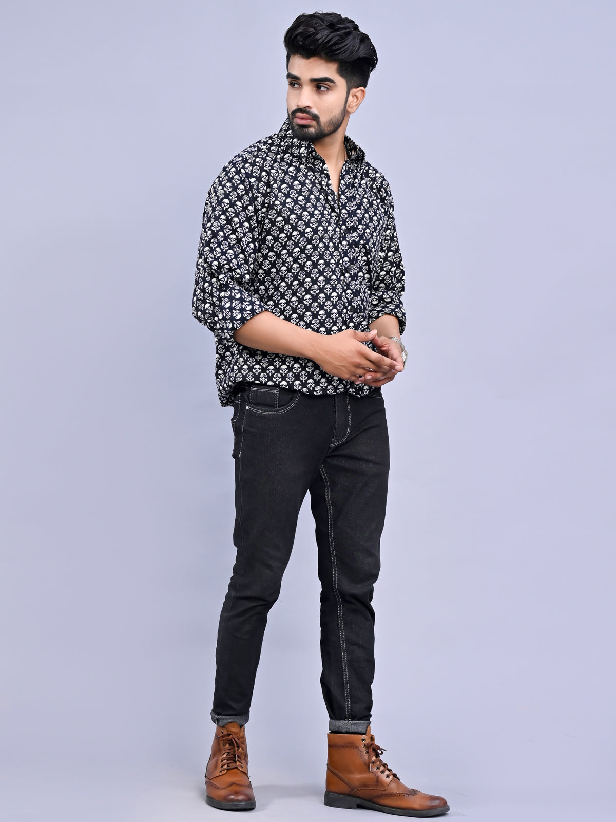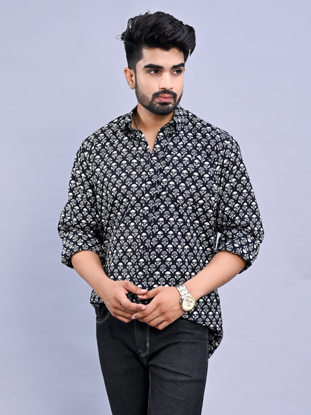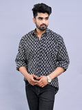 Jaipuri Sanganeri Black Block Printed Cotton Shirt For Men