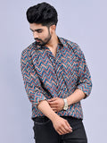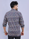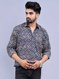 Jaipuri Sanganeri Multicolor striped Printed Cotton Shirt For Men
