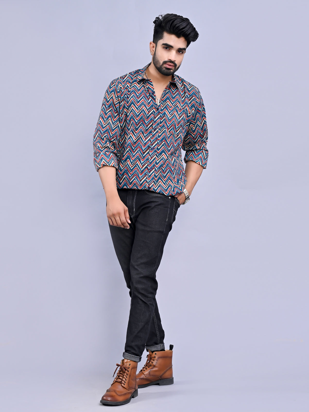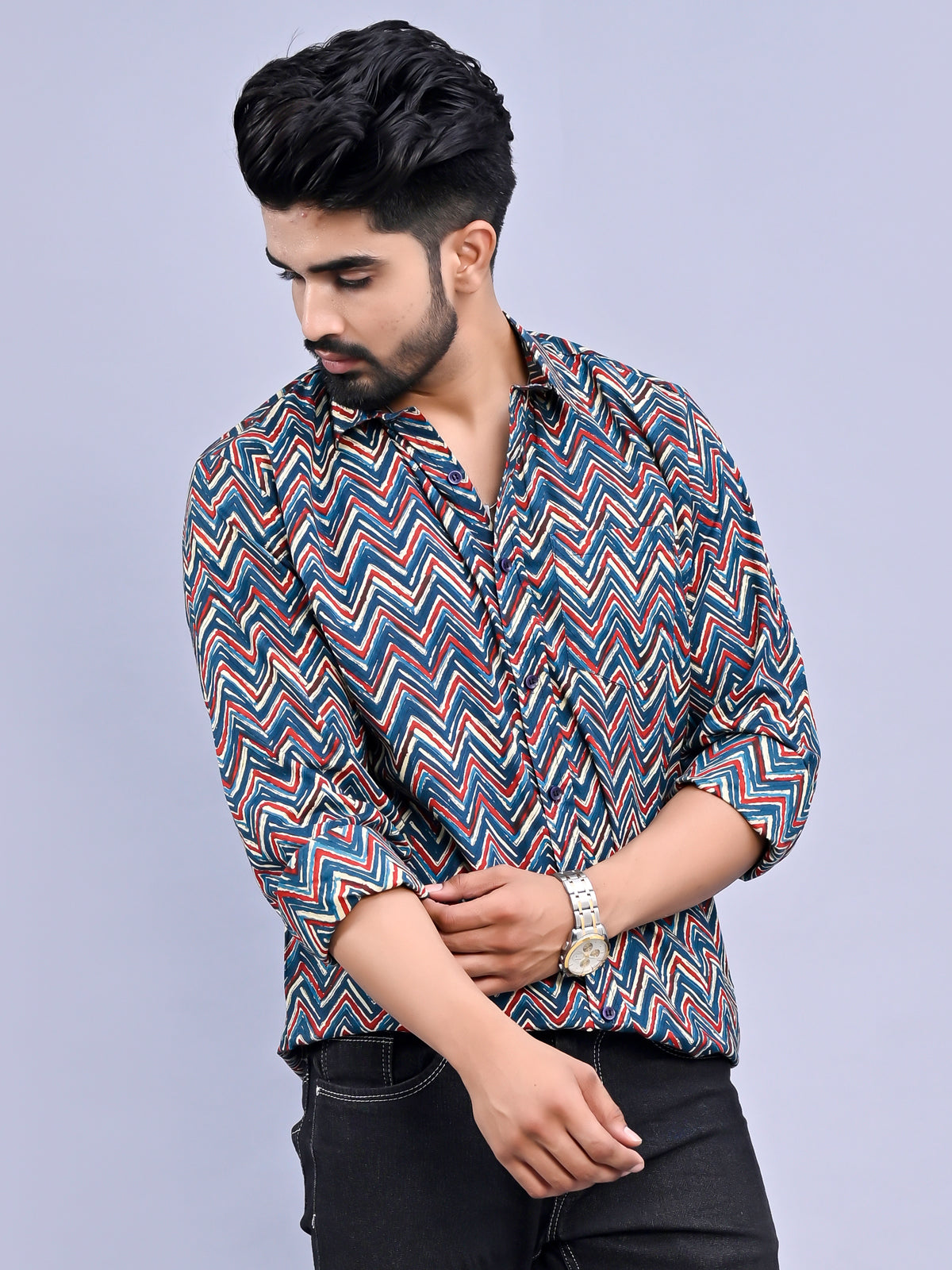 These Jaipur Sanganeri Block Printed Cambric Cotton Men's Shirt From Quaclo are only available on Flipkart. Embrace Rajasthan's rich heritage by wearing one of these beautifully made shirts. Traditional Sanganeri block prints are used to decorate each piece, showing intricate patterns and vivid colours. These shirts are made of excellent cambric cotton and offer the optimum balance of comfort and breathability, making them suitable for every season. These shirts effortlessly boost your sense of style whether you're going to a formal occasion or a casual outing. With the Jaipur Sanganeri block printed cambric cotton men's shirt from Quaclo, you can experience the very best in workmanship and heritage.
