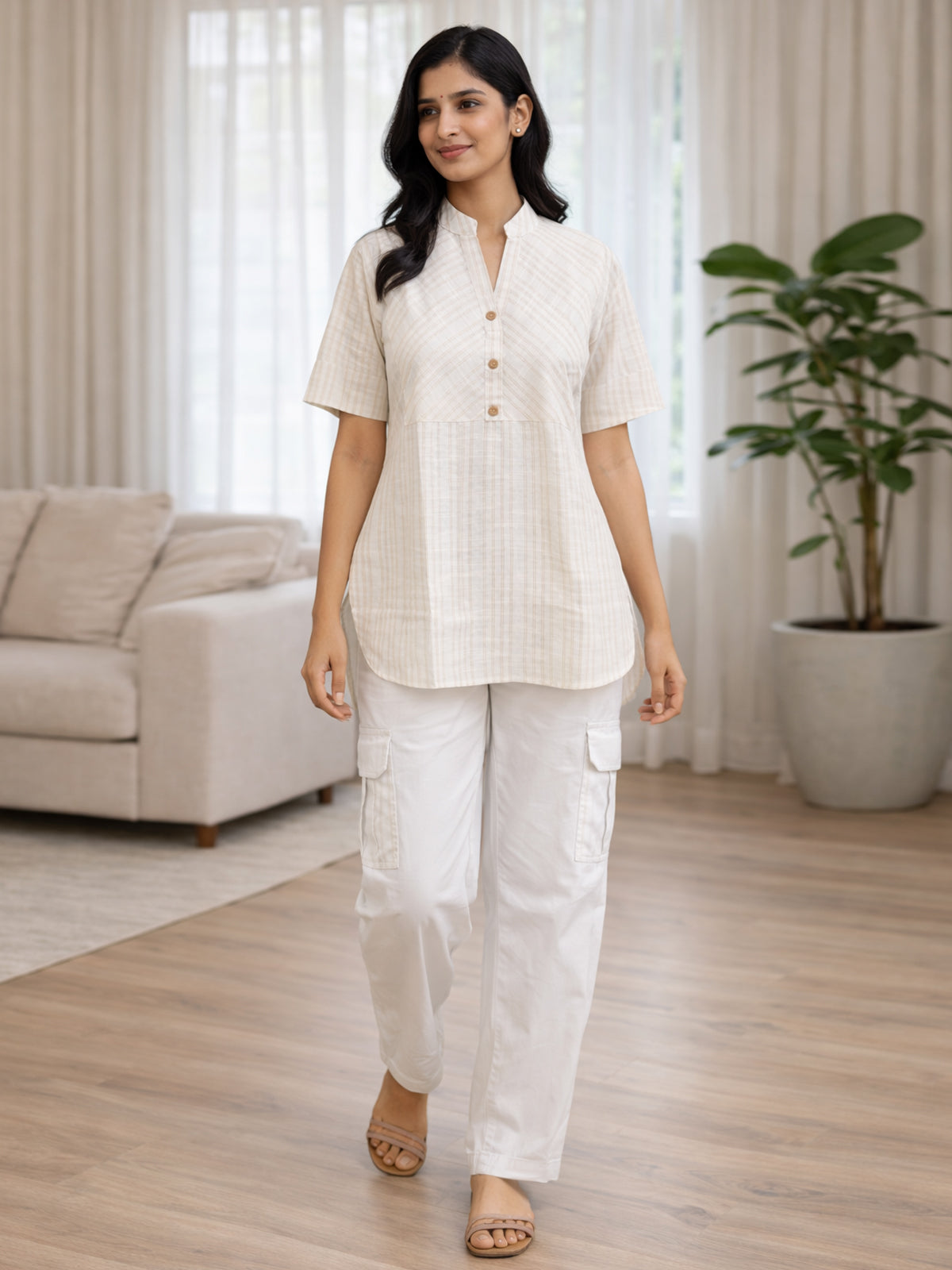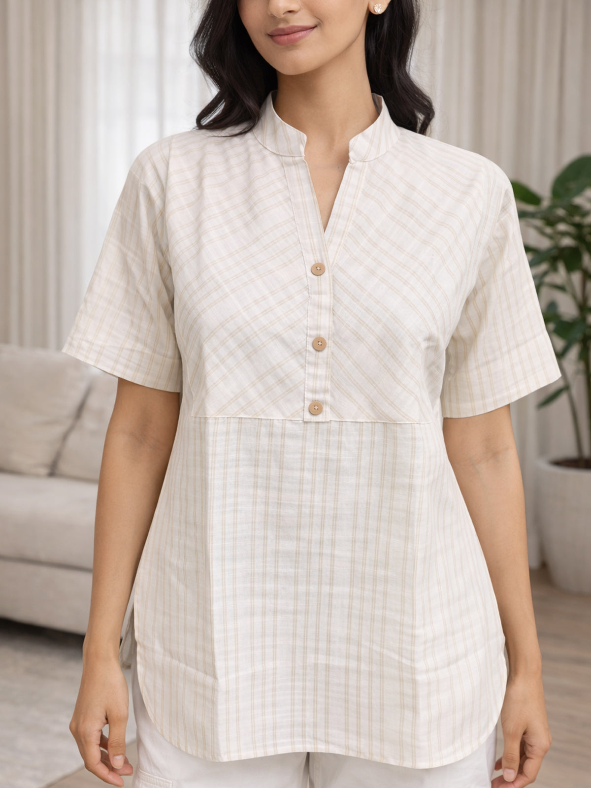 This women’s stripe yoke top is designed to add simple elegance to your everyday style. Featuring a comfortable regular fit, classic stripe pattern, and stylish yoke design, it offers a perfect balance of comfort and fashion. Made from soft, breathable fabric, this top is ideal for office wear, casual outings, and daily use. It pairs effortlessly with jeans, trousers, or leggings, making it a versatile wardrobe essential..