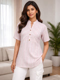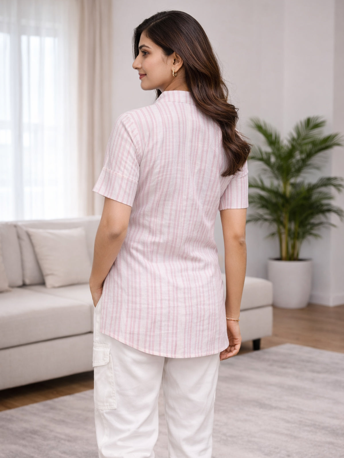 This women’s stripe yoke top is designed to add simple elegance to your everyday style. Featuring a comfortable regular fit, classic stripe pattern, and stylish yoke design, it offers a perfect balance of comfort and fashion. Made from soft, breathable fabric, this top is ideal for office wear, casual outings, and daily use. It pairs effortlessly with jeans, trousers, or leggings, making it a versatile wardrobe essential..