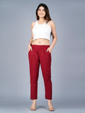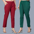 Pack Of 2 Womens Regular Fit Maroon And Bottle Green Fully Elastic Waistband Cotton Trouser