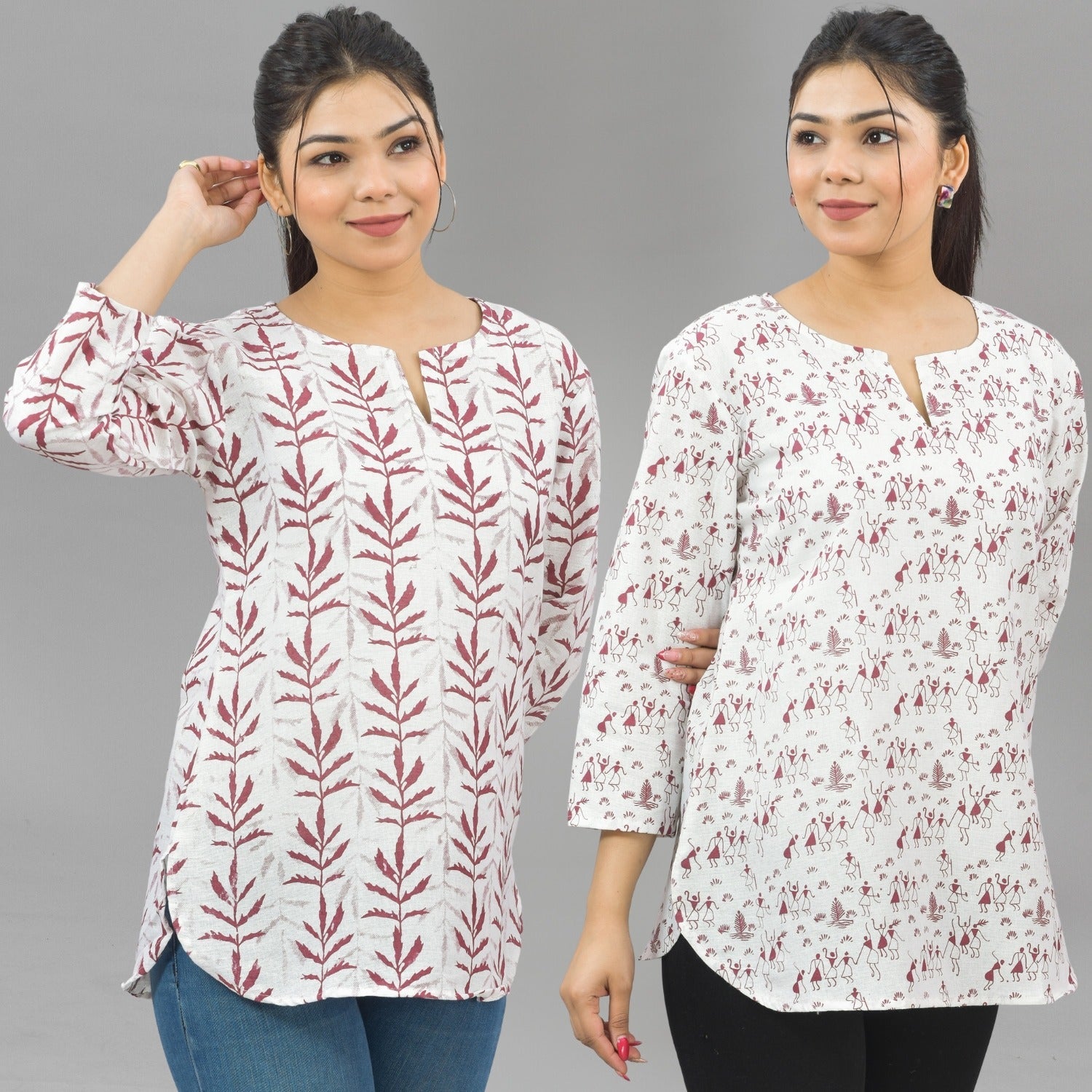 Discover the ideal combination of style and comfort with our Pack Of 2 Womens Regular Fit Short Tops Combo. Embrace the essence of fashion with appealing floral, tribal, vector, and zigzag prints that bring a splash of excitement to your outfit. These tops are made of quality cotton and are breathable and cosy all day. The round neck with a V-cut enhances your neckline, giving you a sleek and modern look. Elevate your fashion quotient easy with these adaptable short kurti tops that move from casual outings to semi formal occasions. Shop now to update your look with the latest fashion trends for women!