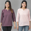 Our Set of Two Striped Cotton Women Tops Combo offers unmatched comfort and style. For stylish ladies who value both cost and quality, these contemporary tops are ideal. These tops, which are made of soft and lightweight cotton, have a timeless striped pattern that elevates any outfit. These tops are adaptable for any occasion with a flattering fit and a robust design. With this essential set, you can up your style ante while maintaining comfort. Get our Striped Cotton Women Tops Combo today to stand out From The Crowd.