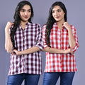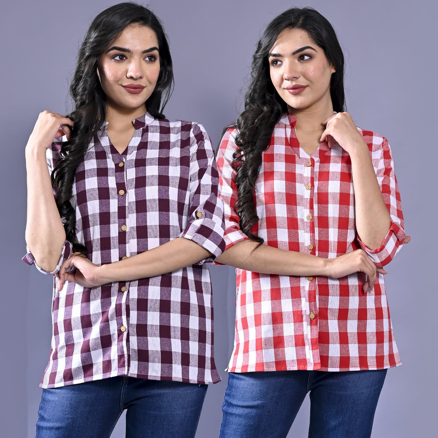 Pack Of 2 Womens Maroon And Pink Chekerd Casual Shirt Combo