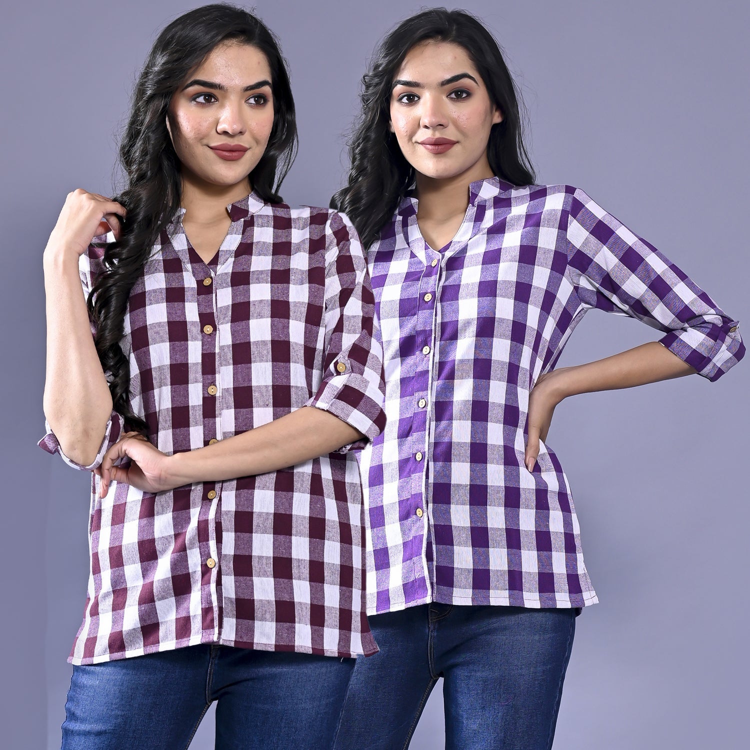Pack Of 2 Womens Maroon And Purple Chekerd Casual Shirt Combo