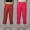 Pack Of 2 Womens Maroon And Rani Pink Ankle Length Rayon Culottes Trouser Combo