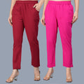 Pack Of 2 Womens Regular Fit Maroon And Rani Pink Fully Elastic Waistband Cotton Trouser