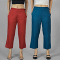 Pack Of 2 Womens Maroon And Teal Blue Ankle Length Rayon Culottes Trouser Combo