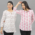 Discover the ideal combination of style and comfort with our Pack Of 2 Womens Regular Fit Short Tops Combo. Embrace the essence of fashion with appealing floral, tribal, vector, and zigzag prints that bring a splash of excitement to your outfit. These tops are made of quality cotton and are breathable and cosy all day. The round neck with a V-cut enhances your neckline, giving you a sleek and modern look. Elevate your fashion quotient easy with these adaptable short kurti tops that move from casual outings to semi formal occasions. Shop now to update your look with the latest fashion trends for women!