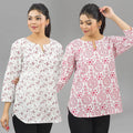 Discover the ideal combination of style and comfort with our Pack Of 2 Womens Regular Fit Short Tops Combo. Embrace the essence of fashion with appealing floral, tribal, vector, and zigzag prints that bring a splash of excitement to your outfit. These tops are made of quality cotton and are breathable and cosy all day. The round neck with a V-cut enhances your neckline, giving you a sleek and modern look. Elevate your fashion quotient easy with these adaptable short kurti tops that move from casual outings to semi formal occasions. Shop now to update your look with the latest fashion trends for women!