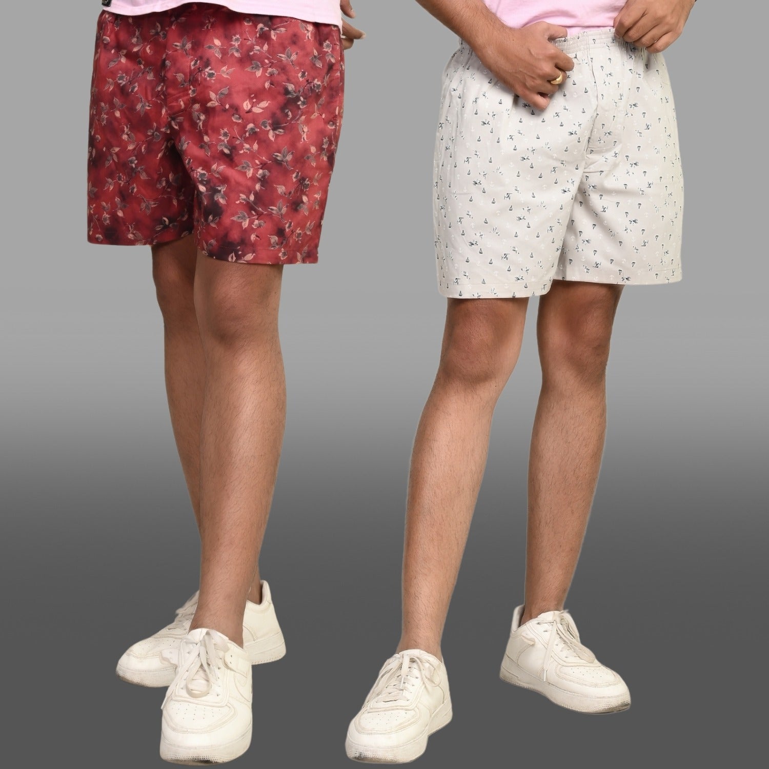 Pack Of 2 Maroon And White Mens Printed Shorts Combo