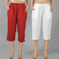 Pack Of 2 Womens Maroon And White Calf Length Rayon Culottes Trouser Combo