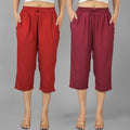 Pack Of 2 Womens Maroon And Wine Calf Length Rayon Culottes Trouser Combo