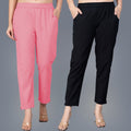 Pack Of 2 Womens Regular Fit Mauve Pink And Black Fully Elastic Waistband Cotton Trouser