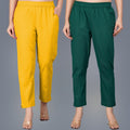 Pack Of 2 Womens Regular Fit Mauve Pink And Bottle Green Fully Elastic Waistband Cotton Trouser