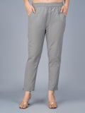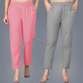 Pack Of 2 Womens Regular Fit Mauve Pink And Grey Fully Elastic Waistband Cotton Trouser